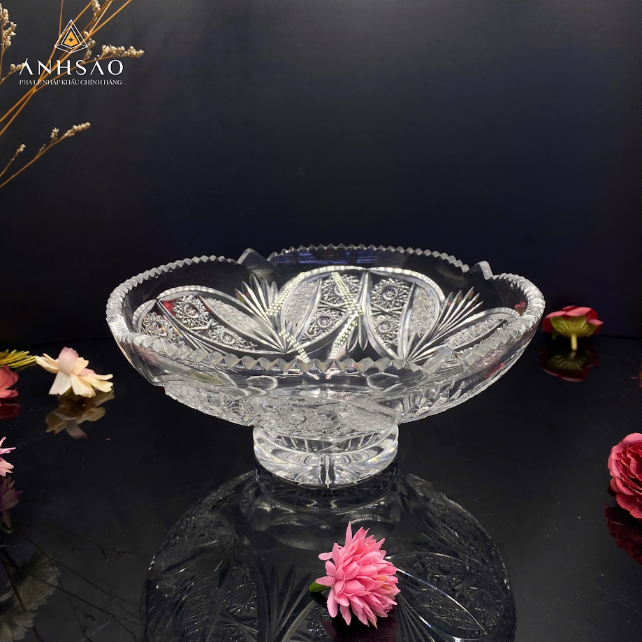 Mẫu âu pha lê chân đế gây ấn tượng với các họa tiết cắt khắc tinh xảo theo phong cách châu Âu cổ điển. Thiết kế chân cao giúp tổng thể thanh thoát, phù hợp với không gian nội thất tân cổ điển hoặc sang trọng. Sản phẩm không chỉ đẹp về hình thức mà còn bền bỉ, dễ vệ sinh, thích hợp sử dụng lâu dài cho cả mục đích trang trí lẫn sử dụng hằng ngày.