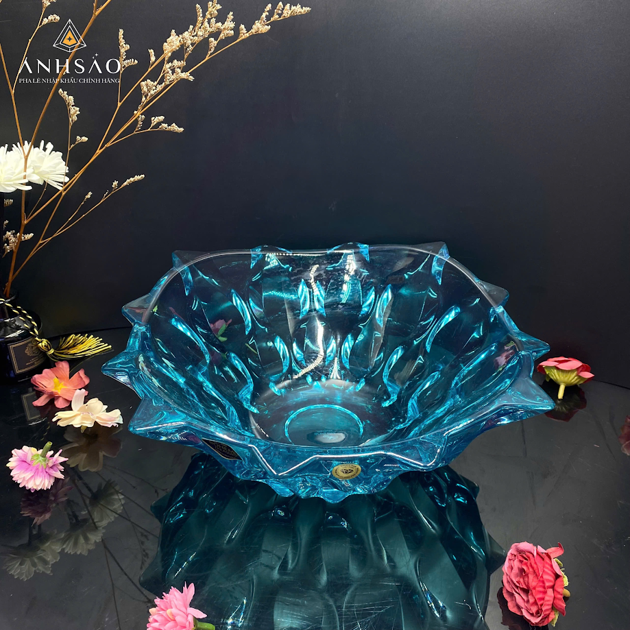 Nếu bạn yêu thích sự trẻ trung và khác biệt, mẫu âu pha lê màu xanh ngọc với thiết kế uốn lượn mềm mại sẽ là lựa chọn lý tưởng. Màu sắc tươi mát kết hợp kiểu dáng độc đáo giúp sản phẩm trở thành điểm nhấn nổi bật trong không gian hiện đại. Mẫu âu này rất phù hợp để trưng bày hoa quả, vật trang trí hoặc làm quà tặng cao cấp.