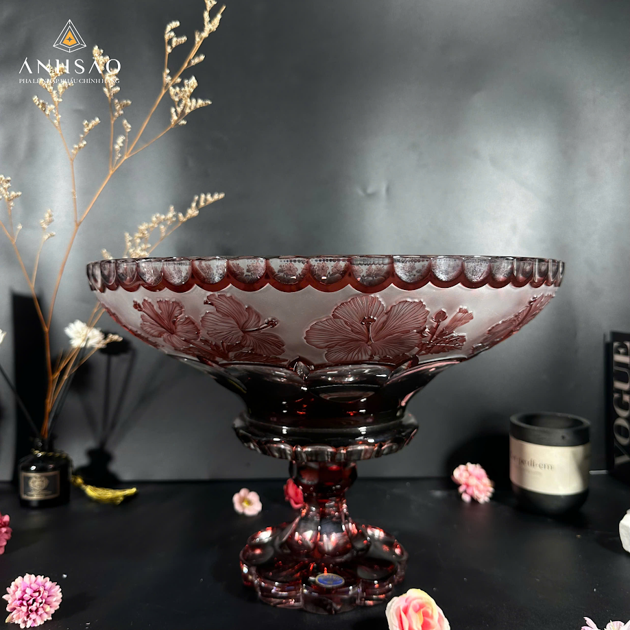 Nổi bật nhất trong bộ sưu tập là mẫu Âu pha lê chân cao với hoa văn hoa nổi tinh tế, mang đậm tính nghệ thuật. Phần chân trụ vững chắc giúp nâng tầm sản phẩm, tạo cảm giác bề thế và quyền quý. Mẫu âu này đặc biệt phù hợp để trưng bày ở trung tâm bàn tiệc, sảnh lớn hoặc không gian phòng khách cao cấp. Sự kết hợp giữa màu sắc pha lê sang trọng và thiết kế cổ điển khiến sản phẩm trở thành tác phẩm trang trí đầy giá trị.