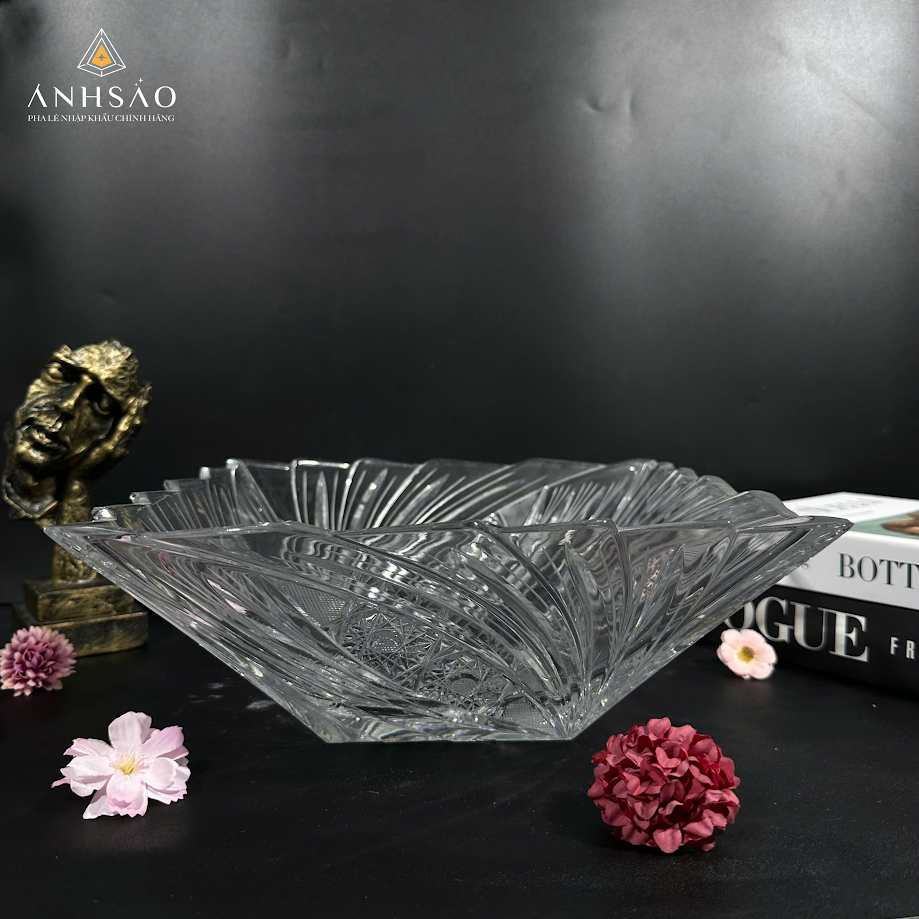 Mẫu Âu pha lê thứ hai mang phong cách cổ điển với họa tiết chạm khắc tinh xảo, mềm mại và cân đối. Thiết kế bo tròn tạo cảm giác hài hòa, sang trọng và rất phù hợp với những không gian mang hơi hướng truyền thống hoặc luxury. Độ trong suốt cao kết hợp cùng hoa văn nổi bật giúp chiếc âu trở thành điểm nhấn thu hút ánh nhìn. Sản phẩm thích hợp dùng để đựng trái cây, bánh kẹo hoặc làm quà tặng cao cấp trong các dịp lễ, tân gia.