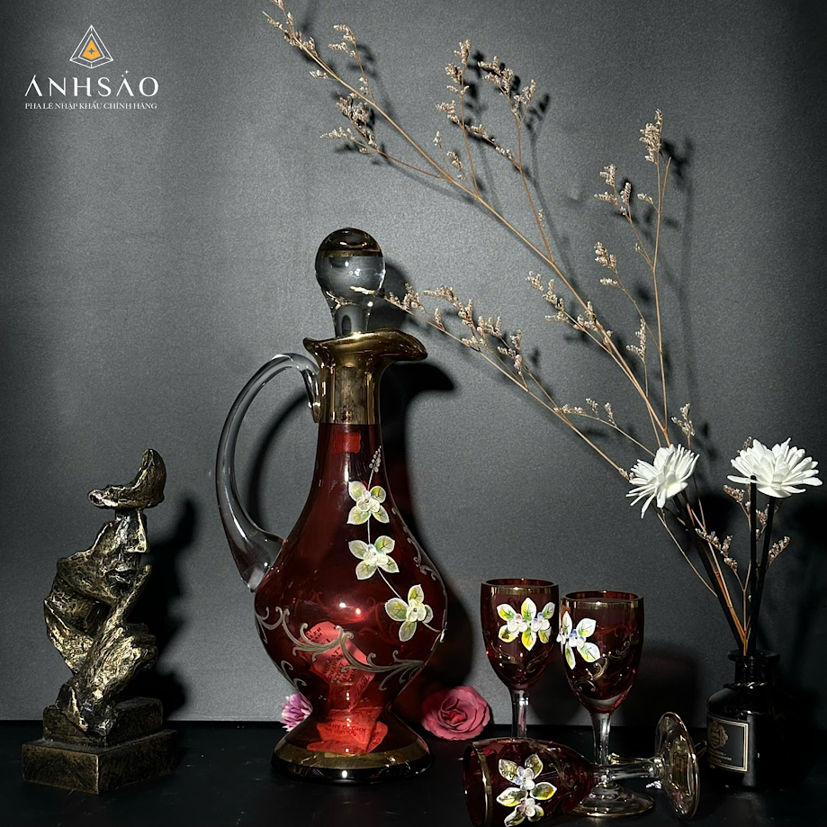 Lấy cảm hứng từ nghệ thuật thủ công truyền thống, bộ bình rượu pha lê màu hổ phách gây ấn tượng bởi họa tiết hoa vẽ tay mềm mại. Màu sắc trầm ấm tạo chiều sâu cho rượu, đồng thời mang đến cảm giác ấm cúng, tinh tế khi trưng bày hoặc sử dụng trong những buổi thưởng rượu thân mật.