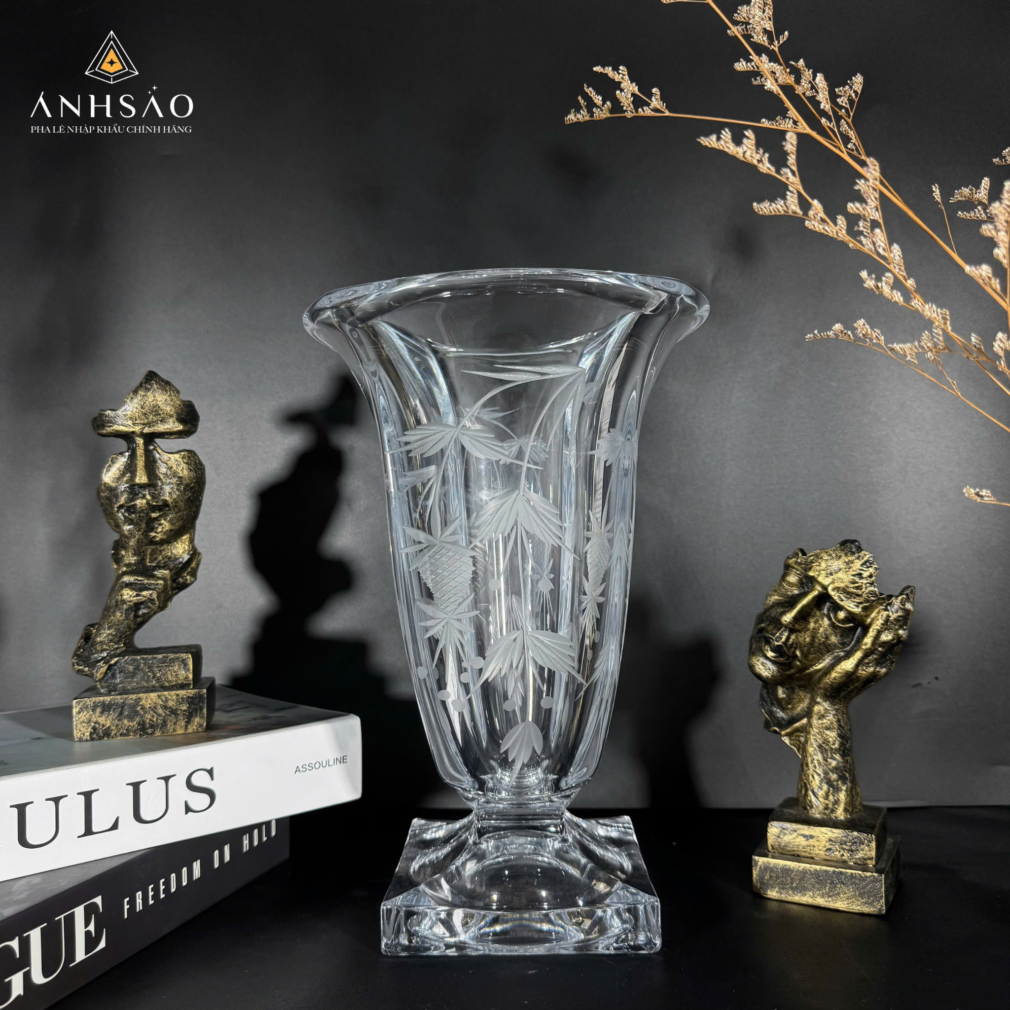 Mẫu lọ hoa pha lê chân đế mài dâu gây ấn tượng với họa tiết mài thủ công mềm mại và tinh tế. Thiết kế dáng cao, miệng loe thanh thoát kết hợp cùng chân đế vuông vững chãi mang lại vẻ cân đối và sang trọng. Khi đặt trong phòng khách hoặc phòng ăn, chiếc lọ hoa pha lê này không chỉ làm tôn vinh vẻ đẹp của hoa tươi mà còn khẳng định gu thẩm mỹ đẳng cấp của gia chủ.