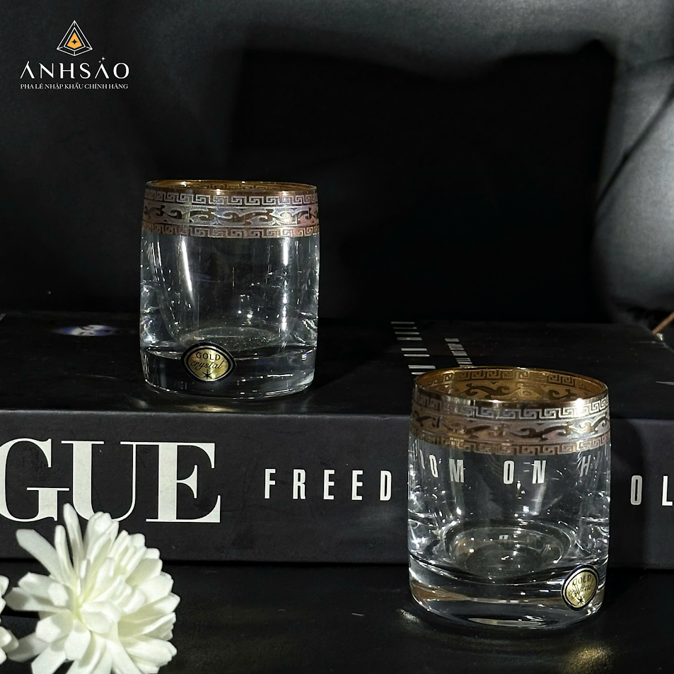 Mẫu chén pha lê này toát lên vẻ đẹp mạnh mẽ, quyền quý, lấy cảm hứng từ những họa tiết kiến trúc Hy Lạp cổ đại - một lựa chọn không thể thiếu trong bộ sưu tập của những người yêu thích sự cổ điển và vĩnh cửu. Sự kết hợp hoàn hảo thân chén pha lê được giữ trong suốt, phô bày độ trong tuyệt đối của pha lê. Tuy nhiên, điểm nhấn xa hoa nằm ở viền miệng được mạ một lớp vàng óng ánh, chạm khắc họa tiết "Greek Key" (chìa khóa Hy Lạp) đan xen. Họa tiết này, còn được gọi là Meander, tượng trưng cho sự vô tận, dòng chảy vĩnh cửu và sự đoàn kết. Chiếc chén pha lê này không chỉ đẹp mà còn chứa đựng ý nghĩa triết học sâu sắc