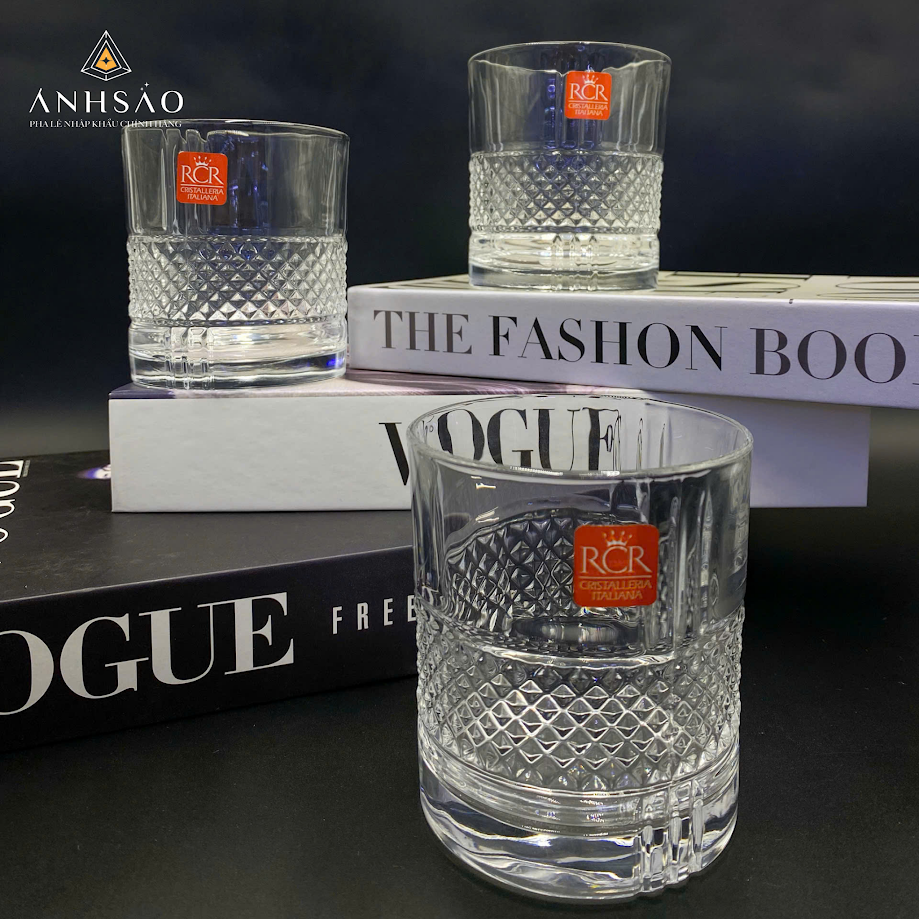 Dòng cốc pha lê cắt kim cương đến từ thương hiệu RCR Cristalleria Italiana gây ấn tượng với họa tiết hình học sắc nét, được gia công tinh xảo trên thân cốc. Thiết kế mang phong cách cổ điển châu Âu, tạo cảm giác chắc tay và sang trọng khi sử dụng. Loại cốc pha lê này đặc biệt phù hợp để thưởng thức whisky, cocktail hoặc rượu mạnh, giúp tôn lên màu sắc và hương vị của đồ uống.