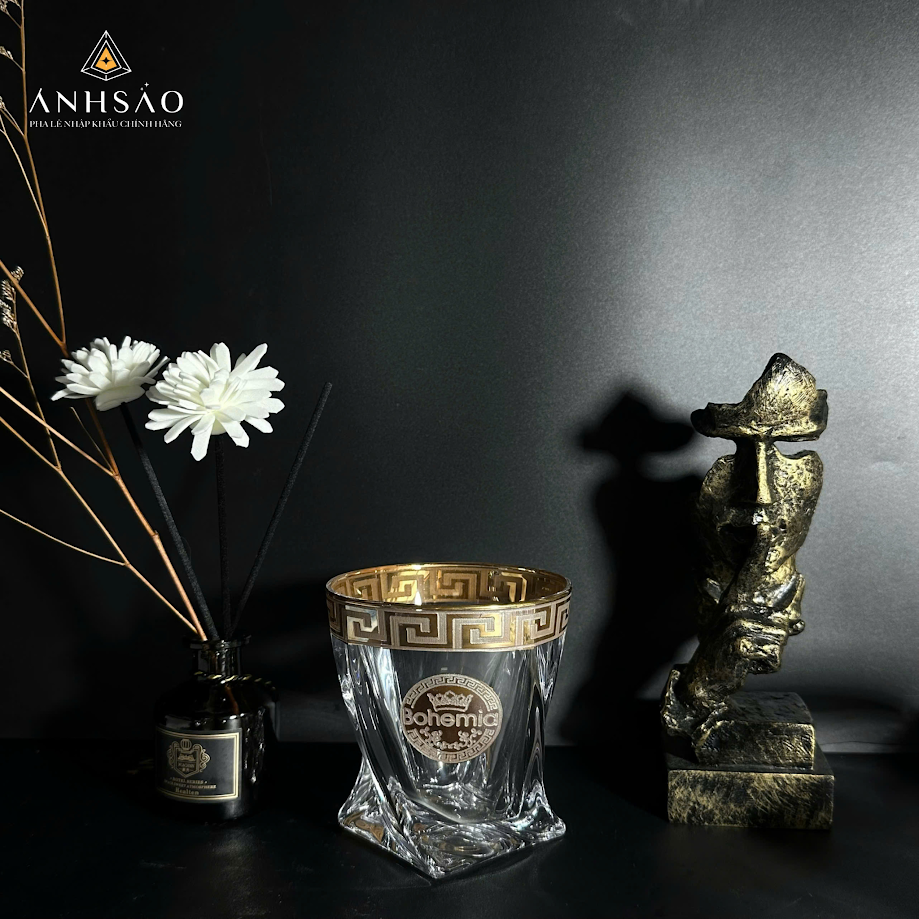 Mẫu cốc pha lê Bohemia sở hữu form dáng vuông bo mềm độc đáo, phần đáy dày tạo cảm giác chắc chắn khi cầm nắm. Logo tinh xảo cùng họa tiết viền vàng giúp sản phẩm trở thành điểm nhấn nổi bật trong mọi không gian trưng bày, phù hợp với phong cách sang trọng và cá tính.