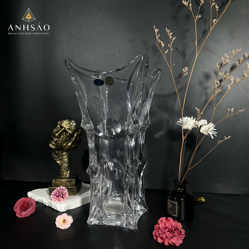 Lọ hoa pha lê có đường nét uốn lượn và miệng bất đối xứng, phá vỡ mọi quy tắc thông thường, tạo nên sự sống động và ấn tượng mạnh mẽ. Thân lọ hoa pha lê được áp dụng kỹ thuật cắt khía sâu tinh xảo, tạo ra hàng loạt mặt phẳng đa chiều. Những mặt cắt này giúp lọ hoa pha lê tán sắc ánh sáng mạnh mẽ hơn, lấp lánh như kim cương khi có ánh sáng chiếu vào. Tùy theo góc nhìn, hình dạng của lọ hoa pha lê sẽ thay đổi, mang đến trải nghiệm thị giác thú vị và không bao giờ nhàm chán. Phù hợp làm đồ decor cao cấp trong studio, phòng trưng bày nghệ thuật, hoặc làm quà biếu tặng thể hiện gu thẩm mỹ vượt trội.