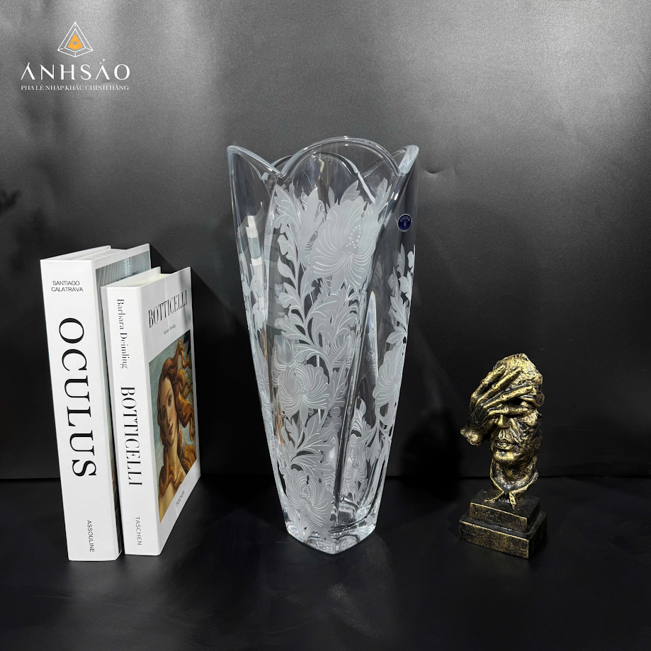 Mẫu lọ hoa pha lê này là sự kết hợp hoàn hảo giữa kỹ thuật chế tác tinh xảo và giá trị thẩm mỹ cao. Họa tiết hoa lớn được khắc tỉ mỉ, tạo chiều sâu và điểm nhấn nổi bật cho sản phẩm. Thiết kế miệng uốn lượn mềm mại giúp tổng thể trở nên sang trọng và khác biệt. Đây là dòng sản phẩm rất được ưa chuộng làm quà tặng cao cấp cho đối tác, khách hàng hoặc dịp tân gia, khai trương.
