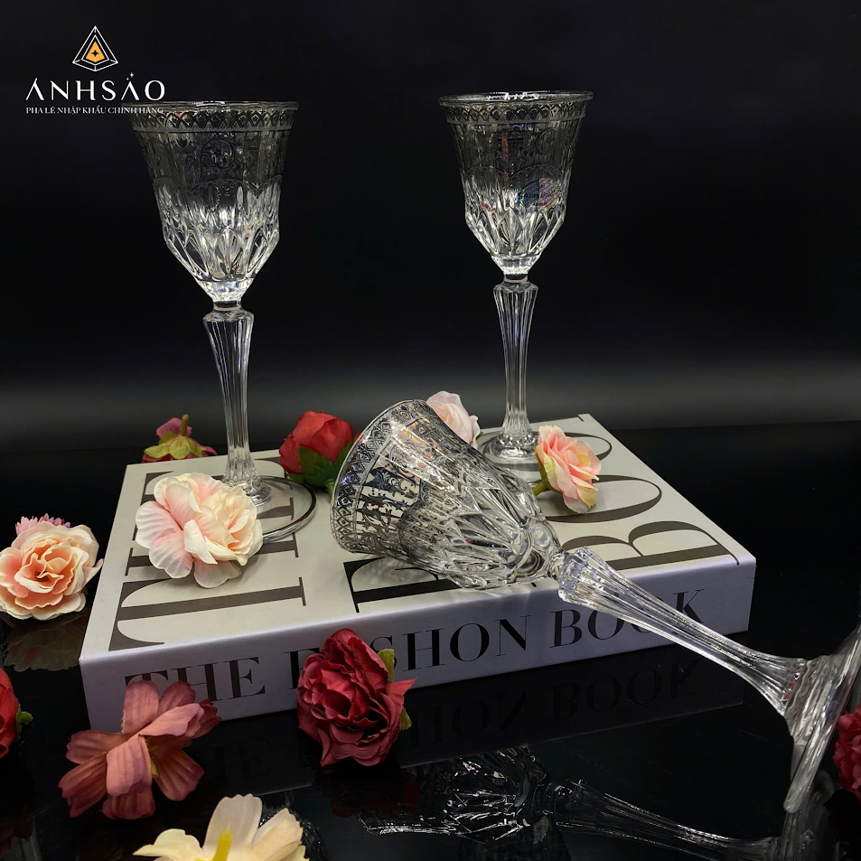Mẫu ly pha lê khảm bạc này là hình ảnh thu nhỏ của sự sang trọng cổ điển. Với thiết kế thân ly cao, thanh mảnh và đế ly chắc chắn, chiếc ly mang lại cảm giác cầm nắm đầm tay và một vẻ ngoài uy nghi. Ly pha lê được bao phủ bởi các hoa văn chạm khắc sâu, tạo ra hàng ngàn mặt cắt nhỏ giúp ánh sáng khúc xạ rực rỡ. Khi rót rượu hoặc nước, hiệu ứng lấp lánh này biến đồ uống thành một viên ngọc quý. Chân ly pha lê được chế tác với các đường cắt và vân nổi chạy dọc, không chỉ tăng thêm vẻ đẹp thị giác mà còn giúp chống trơn trượt. Ly pha lê này là lý tưởng cho việc thưởng thức rượu vang đỏ, vang trắng, hoặc sử dụng làm ly nước trong các buổi tiệc trang trọng, tạo nên không khí quý tộc, trang nhã. Đây là sự lựa chọn hoàn hảo cho những ai yêu thích phong cách châu Âu hoàng gia.