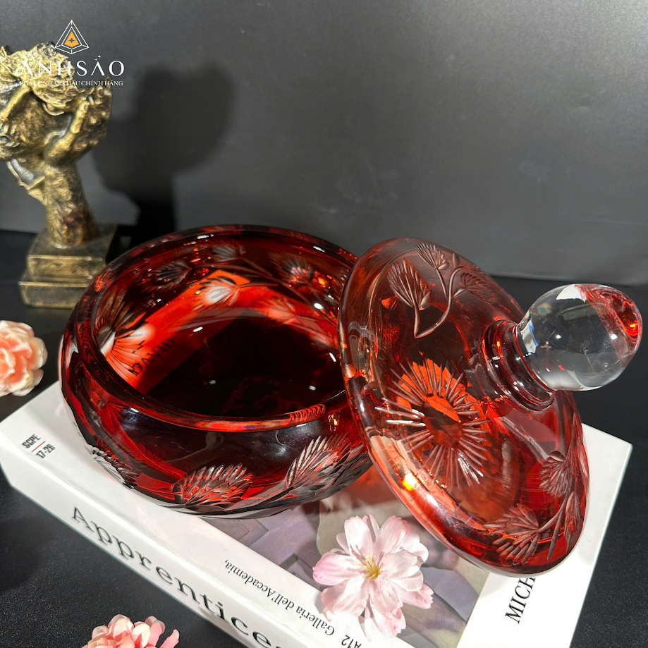 Âu Mứt Pha Lê Đỏ Ruby Chạm Khắc Nổi Bật