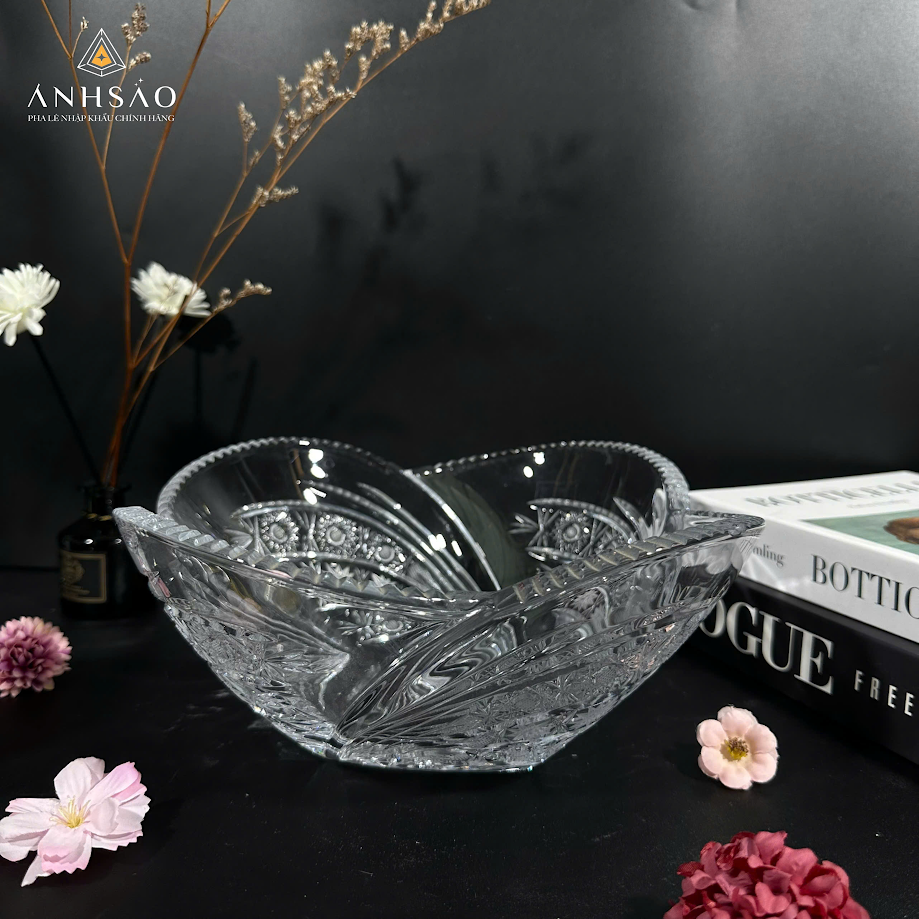 Mẫu Âu pha lê thứ hai mang phong cách cổ điển với họa tiết chạm khắc tinh xảo, mềm mại và cân đối. Thiết kế bo tròn tạo cảm giác hài hòa, sang trọng và rất phù hợp với những không gian mang hơi hướng truyền thống hoặc luxury. Độ trong suốt cao kết hợp cùng hoa văn nổi bật giúp chiếc âu trở thành điểm nhấn thu hút ánh nhìn. Sản phẩm thích hợp dùng để đựng trái cây, bánh kẹo hoặc làm quà tặng cao cấp trong các dịp lễ, tân gia.