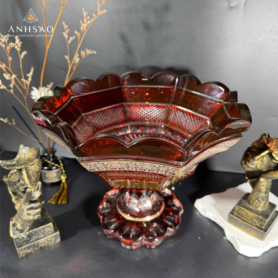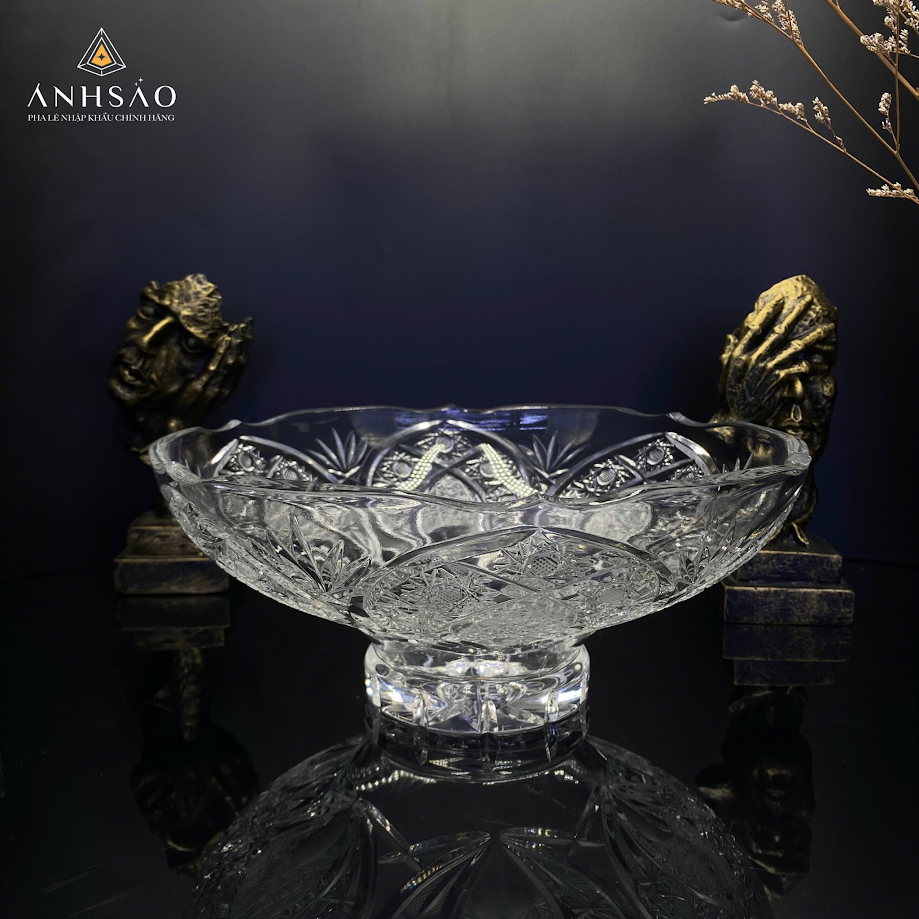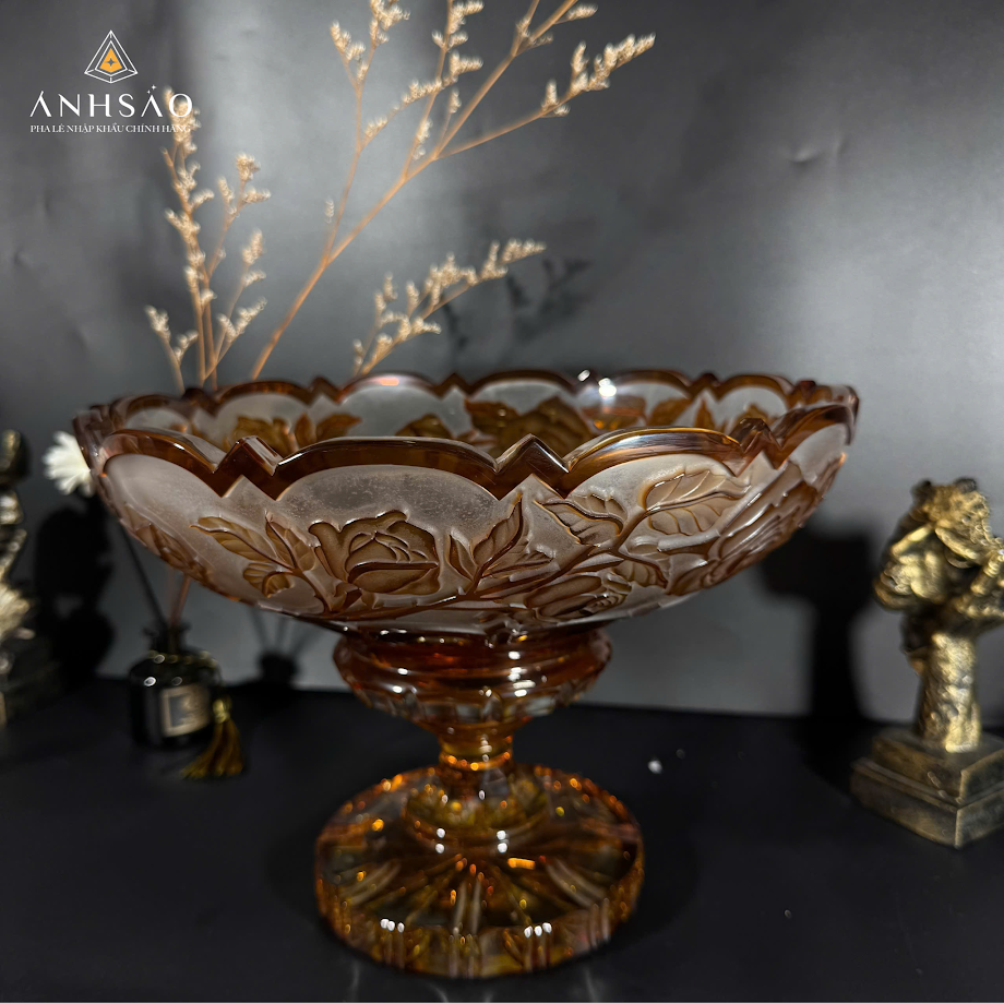 Sở hữu gam màu hổ phách ấm áp cùng họa tiết hoa văn chạm nổi tinh xảo, mẫu âu pha lê này mang lại cảm giác mềm mại nhưng không kém phần sang trọng. Sản phẩm phù hợp để bày hoa quả, bánh kẹo hoặc làm quà tặng cao cấp trong các dịp lễ, tân gia.