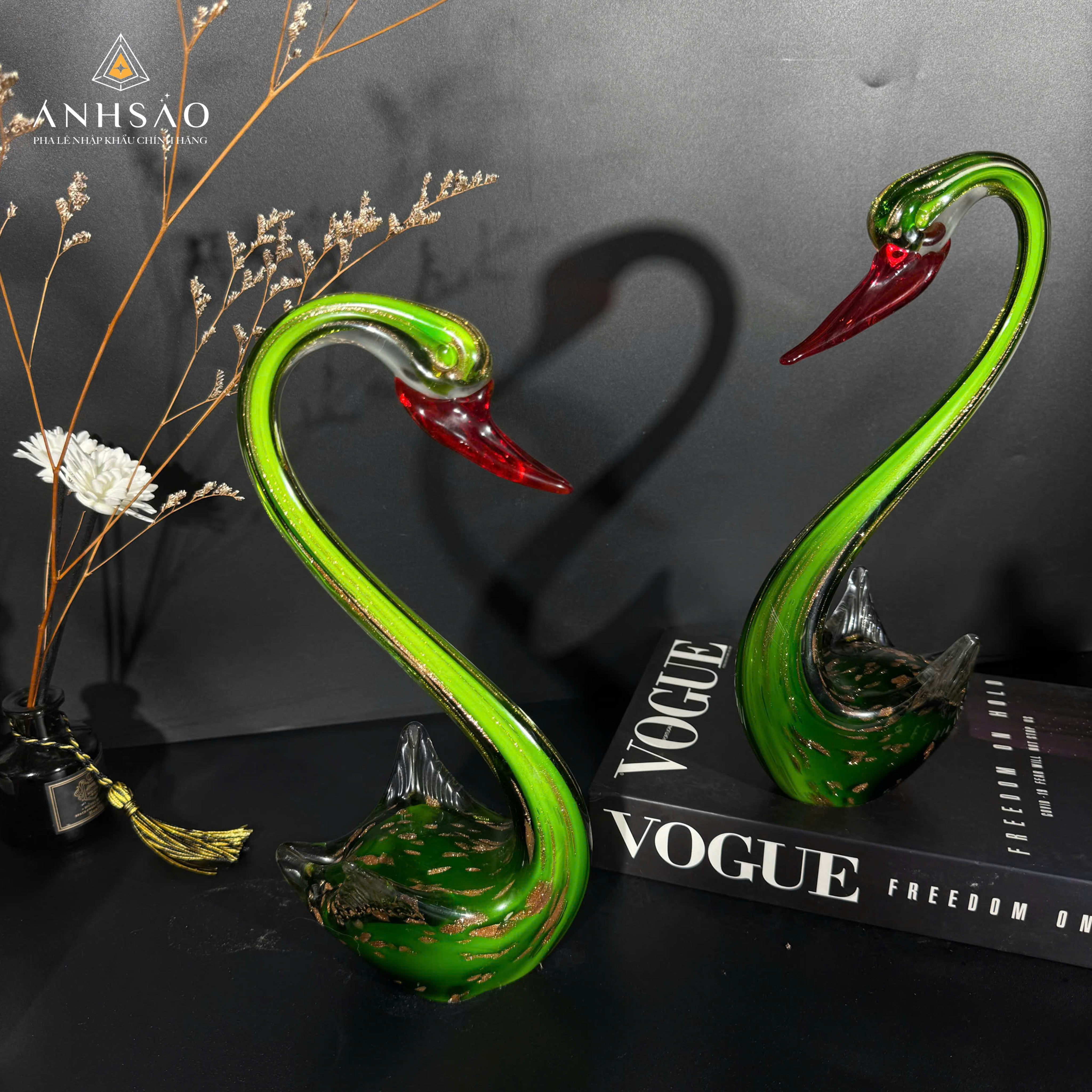 Sản phẩm được chế tác tinh xảo với đường cong mềm mại, đôi thiên nga hướng về nhau như một minh chứng cho tình yêu thủy chung, son sắt. Sắc xanh chủ đạo kết hợp với chi tiết ánh kim lấp lánh làm nổi bật sự sang trọng và đẳng cấp của biểu tượng.