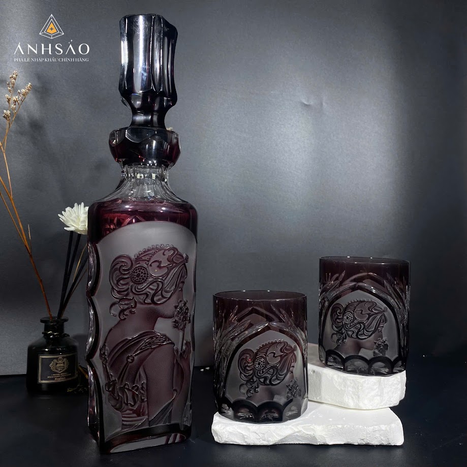 Nếu yêu thích sự sang trọng mang hơi hướng hoài cổ, bộ bình pha lê với tông màu trầm và họa tiết chạm khắc tinh xảo chắc chắn sẽ làm hài lòng những người sành rượu. Các chi tiết trang trí được chế tác tỉ mỉ trên thân bình và ly tạo chiều sâu nghệ thuật, gợi cảm giác quyền quý và lịch lãm. Không chỉ giúp bảo quản rượu tốt hơn, bộ sản phẩm còn góp phần tôn vinh hương vị rượu, mang lại trải nghiệm thưởng thức trọn vẹn. Đây là dòng bộ bình pha lê phù hợp với những ai đề cao giá trị truyền thống, thích không gian sang trọng và có chiều sâu văn hóa.