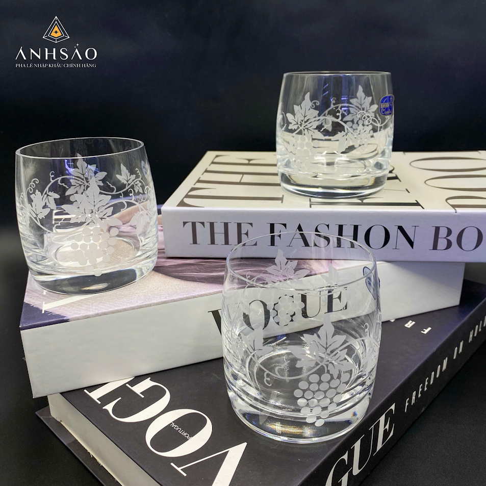 Lấy cảm hứng từ những vườn nho trù phú ở châu Âu, cốc pha lê Bohemia khắc hoa văn nho mang đến vẻ đẹp nhẹ nhàng, cổ điển và thanh lịch. Họa tiết chùm nho được khắc laser tỉ mỉ trên bề mặt pha lê trong suốt, tạo cảm giác tinh tế và sang trọng.