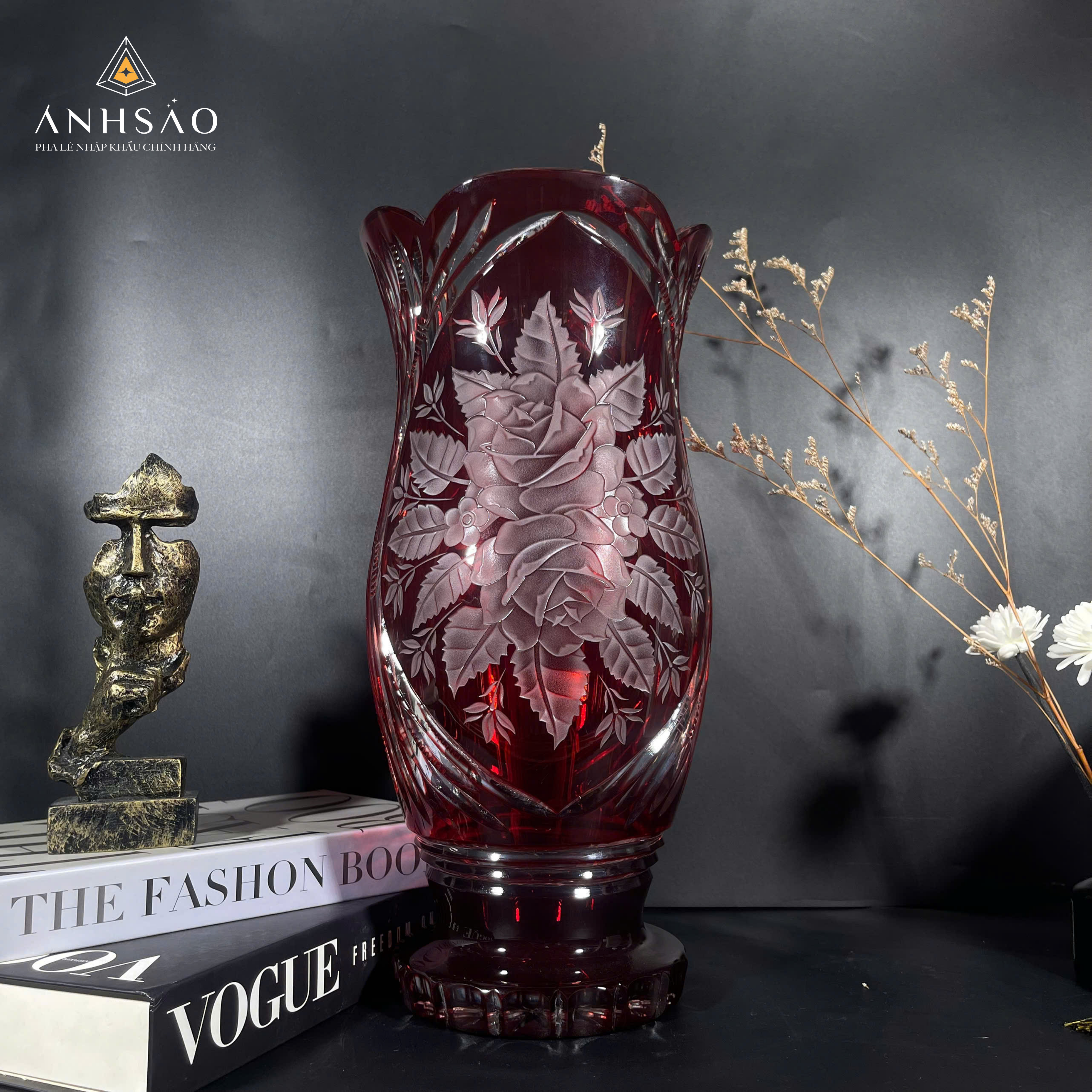 2. Lọ Hoa Pha Lê Haida Điêu Khắc Hoa Hồng Đỏ