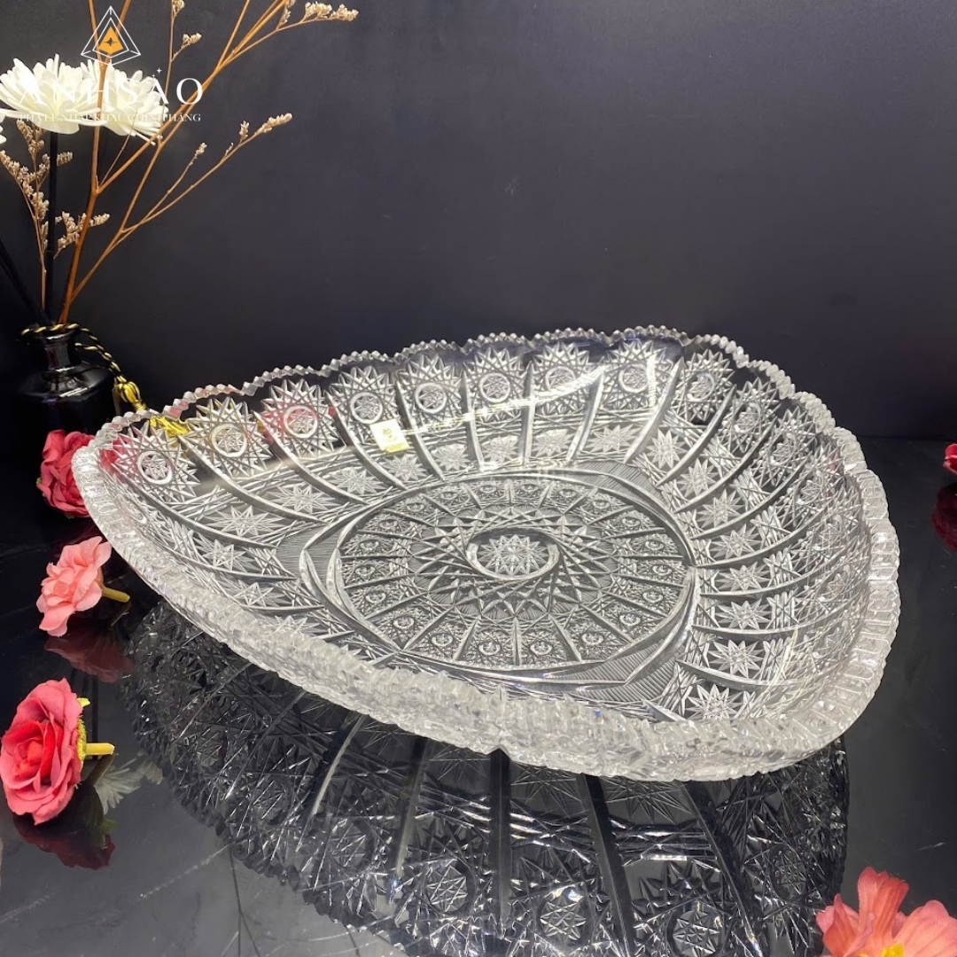 Chất liệu pha lê cao cấp giúp đĩa pha lê có độ bền cao, khả năng chống trầy xước tốt và giữ được vẻ sáng bóng lâu dài. Đặc biệt, hoa văn cắt mài hình tia sáng đồng tâm từ tâm đĩa tạo cảm giác sang trọng và thu hút mọi ánh nhìn.
