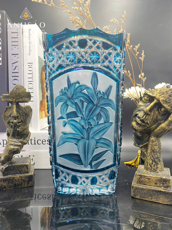 Lọ Hoa Pha Lê Khắc Nổi Nghệ Thuật Cao Cấp