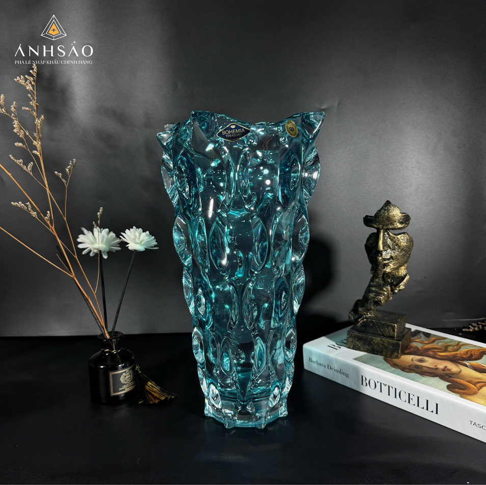 Lọ hoa pha lê thương hiệu Bohemia cam kết về chất lượng và sự tinh xảo trong từng đường nét. Lọ hoa pha lê sở hữu sắc xanh ngọc quý phái, một tông màu hiếm và sang trọng, dễ dàng thu hút mọi ánh nhìn và tạo điểm nhấn nổi bật trong phòng khách hay phòng ăn. Điểm nhấn đặc biệt là hoa văn dập nổi hình giọt nước xếp chồng đầy nghệ thuật. Kết cấu này không chỉ tăng tính thẩm mỹ mà còn tạo ra hiệu ứng phản chiếu ánh sáng lấp lánh, làm nổi bật vẻ đẹp của những cành hoa được cắm trong lọ hoa pha lê. Lọ hoa pha lê này lý tưởng để cắm các loại hoa thân dài như hoa ly, hoa hồng, hoặc đơn giản là một vật phẩm trang trí nội thất hiện đại, thể hiện gu thẩm mỹ đẳng cấp. Sản phẩm là lựa chọn hàng đầu cho quà tặng tân gia hoặc quà tặng sếp đối tác ý nghĩa.