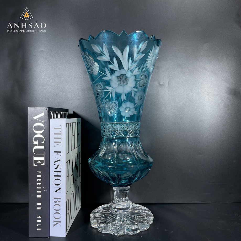 Mẫu lọ hoa pha lê xanh ngọc mang vẻ đẹp nhẹ nhàng, thanh lịch, lấy cảm hứng từ thiên nhiên. Các họa tiết hoa lá mềm mại được chạm nổi tinh tế, kết hợp cùng dáng lọ cao thanh thoát giúp tôn vinh vẻ đẹp của hoa tươi hoặc hoa khô. Sản phẩm rất phù hợp với không gian hiện đại, tối giản hoặc phong cách Bắc Âu. Đặt một lọ hoa pha lê xanh ngọc trên bàn ăn, kệ trang trí hay góc làm việc sẽ mang lại cảm giác thư giãn và hài hòa.