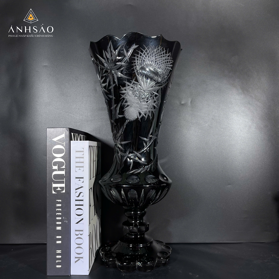 3. Lọ hoa pha lê đen khói nghệ thuật cổ điển