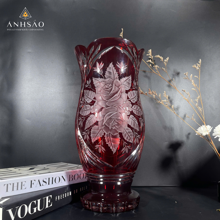 1. Lọ hoa pha lê đỏ ruby chạm khắc hoa hồng
