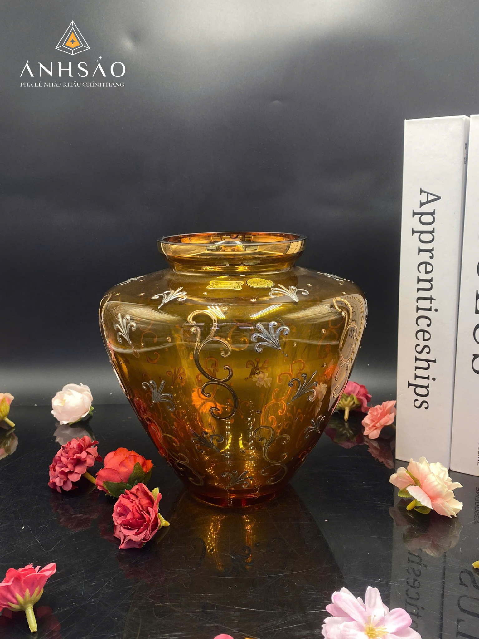 Lọ hoa pha lê EGERMAN là một trong những tuyệt phẩm pha lê cao cấp mang đậm dấu ấn nghệ thuật và sự tinh xảo trong chế tác. Với thiết kế dáng chum độc đáo, kết hợp màu vàng hổ phách sang trọng cùng những họa tiết hoa văn tinh tế, sản phẩm này xứng đáng trở thành điểm nhấn nổi bật trong bất kỳ không gian nào.