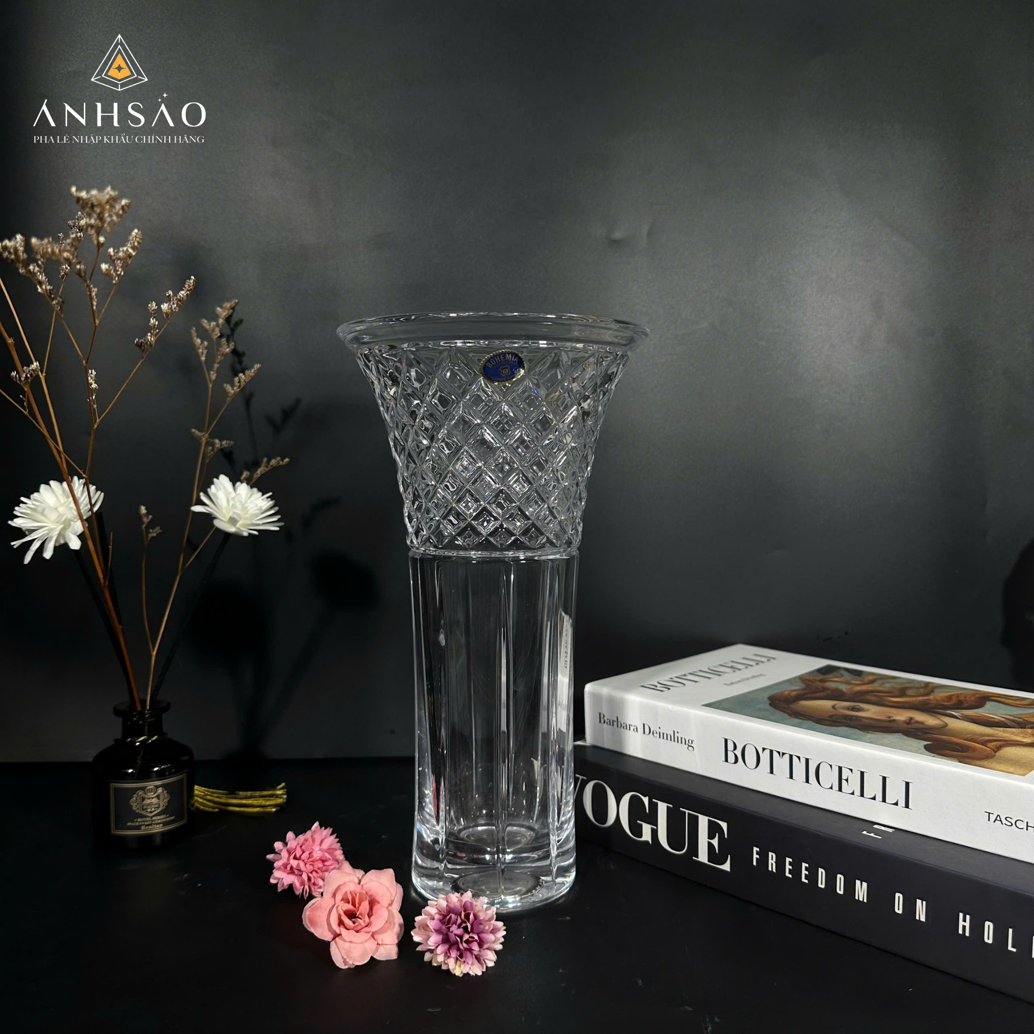 Điểm nhấn nổi bật của lọ hoa pha lê chính là phần thiết kế loe cổ độc đáo, tạo sự cân đối hài hòa cho tổng thể. Bề mặt được mài thủ công tinh xảo theo họa tiết caro truyền thống, vừa sắc nét vừa tinh tế, tạo nên hiệu ứng ánh sáng đẹp mắt mỗi khi trưng bày.