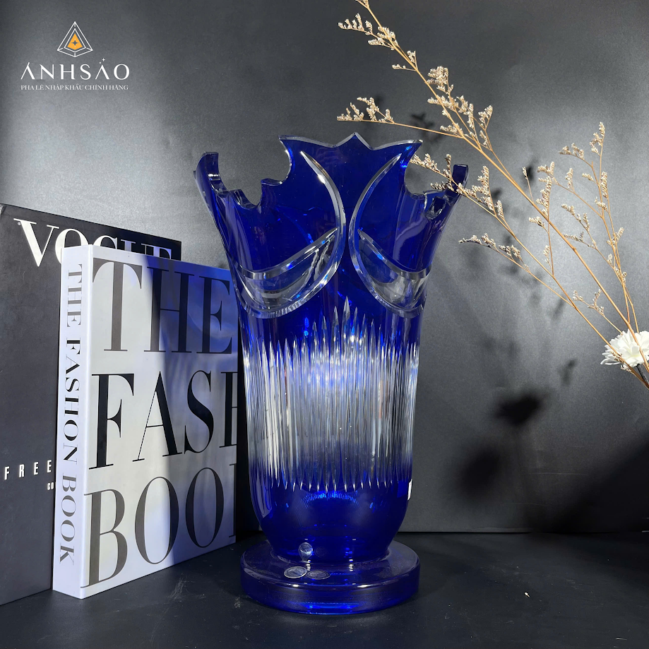 Thiết kế độc đáo với gam xanh cobalt nổi bật giúp mẫu lọ hoa pha lê này trở thành điểm nhấn mạnh mẽ cho không gian nội thất hiện đại. Phần thân được xử lý chuyển màu tinh tế kết hợp các đường cắt sắc nét, tạo hiệu ứng ánh sáng cuốn hút. Sản phẩm thích hợp đặt trên kệ trang trí, bàn console hoặc không gian mang phong cách tối giản, hiện đại nhưng vẫn đầy nghệ thuật.