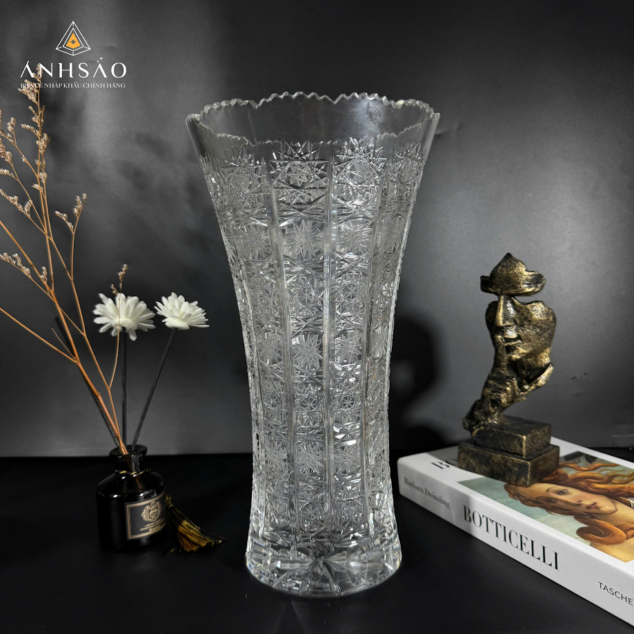 Nếu bạn yêu thích sự cầu kỳ và đậm chất nghệ thuật, mẫu lọ hoa pha lê cắt họa tiết là lựa chọn không thể bỏ qua. Các hoa văn được chạm khắc tỉ mỉ, sắc nét, tạo hiệu ứng lấp lánh đầy cuốn hút khi có ánh sáng chiếu vào. Sản phẩm không chỉ dùng để cắm hoa mà còn có thể trưng bày độc lập như một món đồ decor cao cấp, phù hợp làm quà tặng sang trọng cho đối tác, người thân hoặc trong các dịp đặc biệt.
