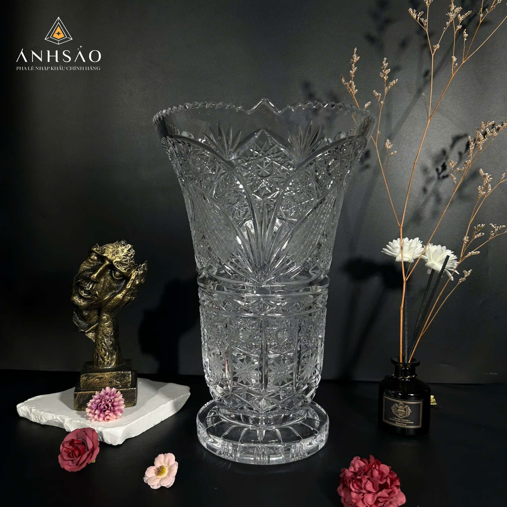 Lọ hoa pha lê vát miệng mài 56 là một trong những mẫu lọ hoa cao cấp được chế tác từ pha lê nhập khẩu chất lượng. Với độ trong suốt hoàn hảo, sản phẩm có khả năng phản chiếu ánh sáng lung linh, tạo điểm nhấn sang trọng cho không gian.