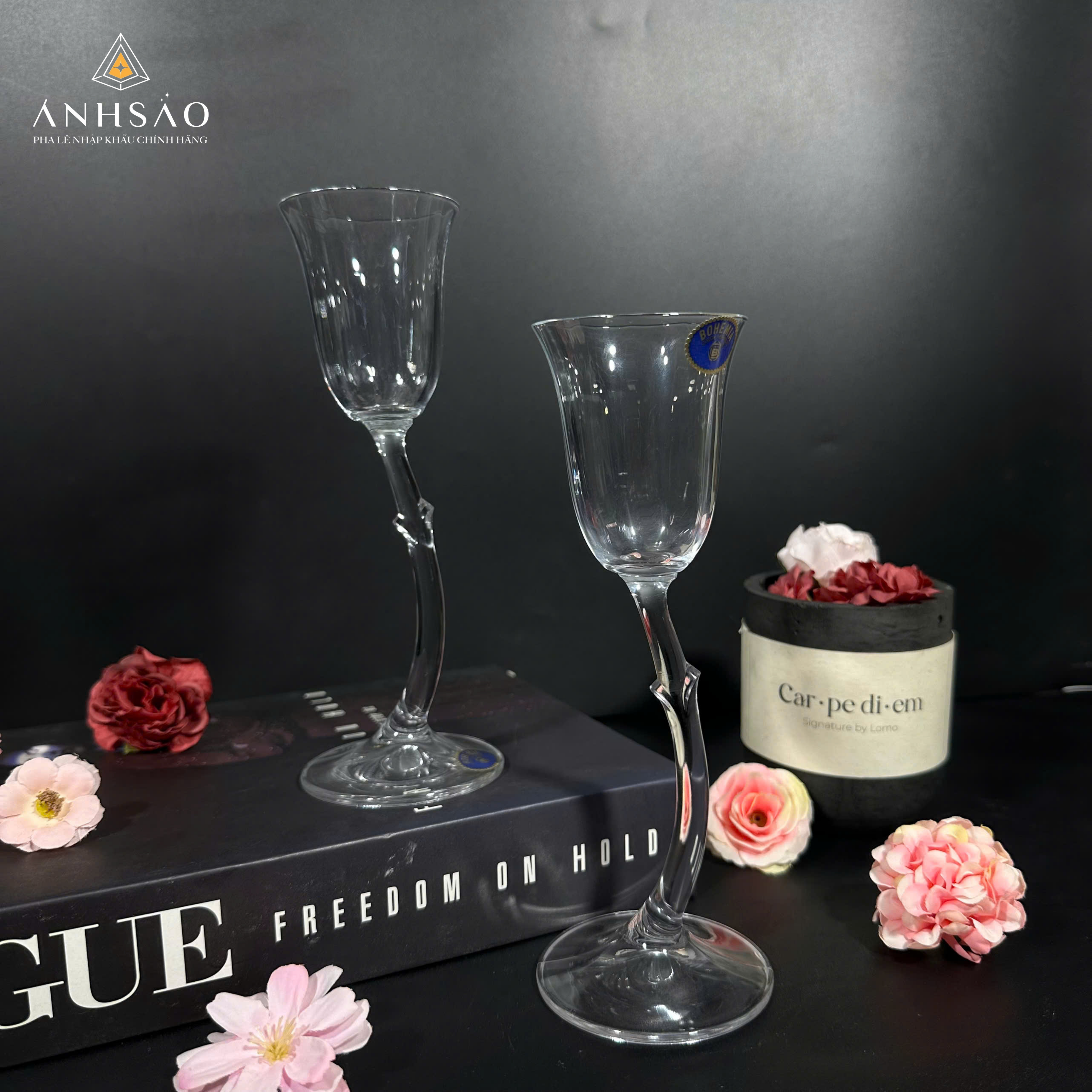 Sản phẩm được chế tác từ chất liệu pha lê Tiệp Khắc cao cấp, nổi bật với độ trong suốt hoàn hảo, phản chiếu ánh sáng lung linh. Mỗi chiếc ly pha lê đều được thổi thủ công với tỉ lệ cân đối hài hòa, đảm bảo sự chắc chắn nhưng vẫn giữ được nét thanh thoát.